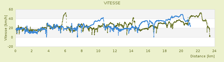 Vitesse moyenne (hors pauses) 22.6 km/h 21.4 km/h