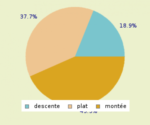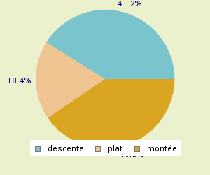 TOTAL: 13.1 Km/h MONTEE: 8.9 Km/h PLAT: 17.75 Km/h DESCENTE : 20.39 Km/h