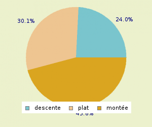 TOTAL: 6.05 Km/h MONTEE: 4.71 Km/h PLAT: 5.9 Km/h DESCENTE : 8.98 Km/h